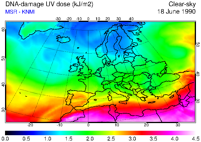 DNA-damage UV dose of 18 June 1990