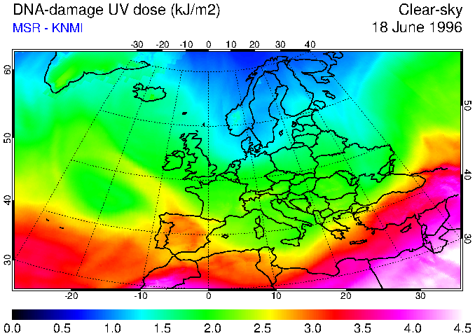 DNA-damage UV dose of 18 June 1996