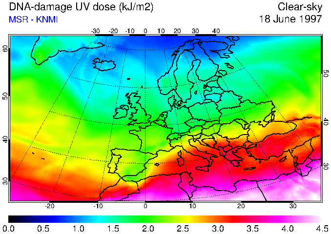 DNA-damage UV dose of 18 June 1997