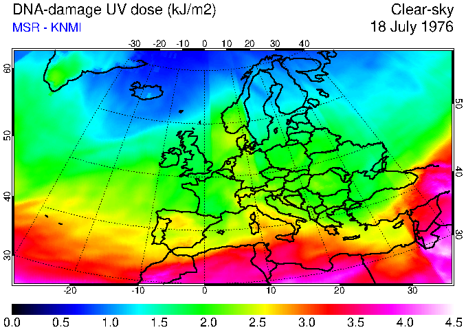 DNA-damage UV dose of 18 July 1976