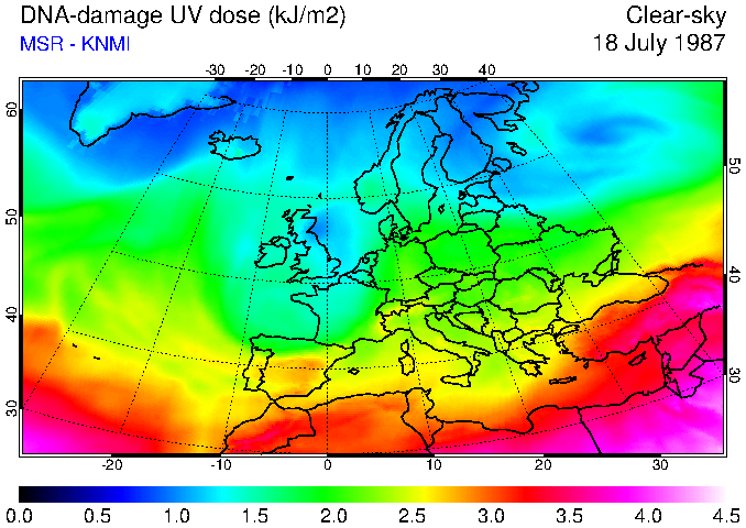 DNA-damage UV dose of 18 July 1987