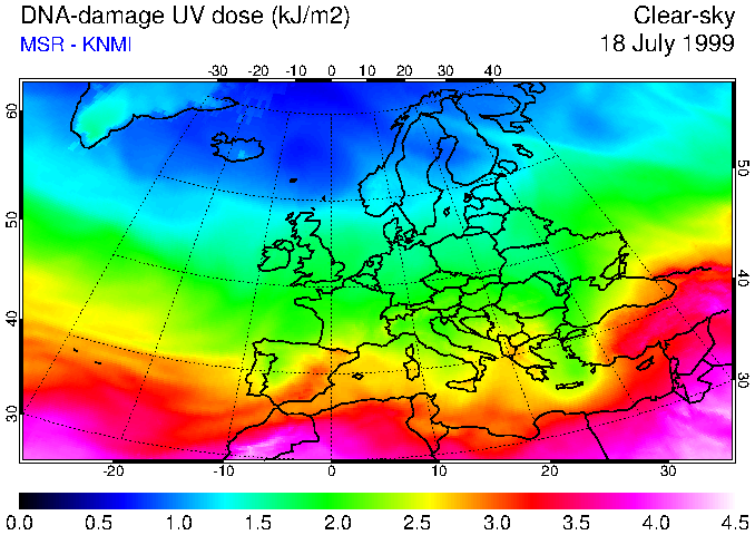 DNA-damage UV dose of 18 July 1999