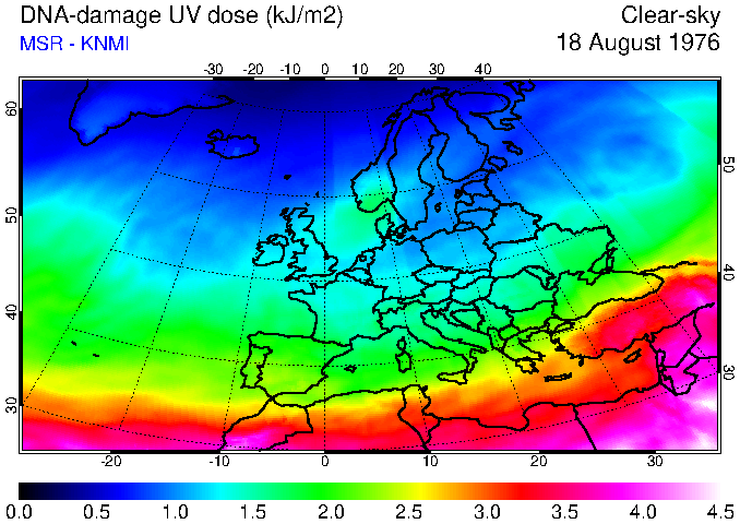 DNA-damage UV dose of 18 August 1976