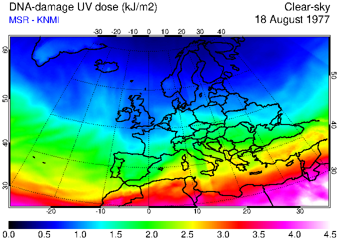DNA-damage UV dose of 18 August 1977
