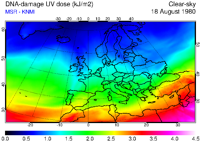 DNA-damage UV dose of 18 August 1980