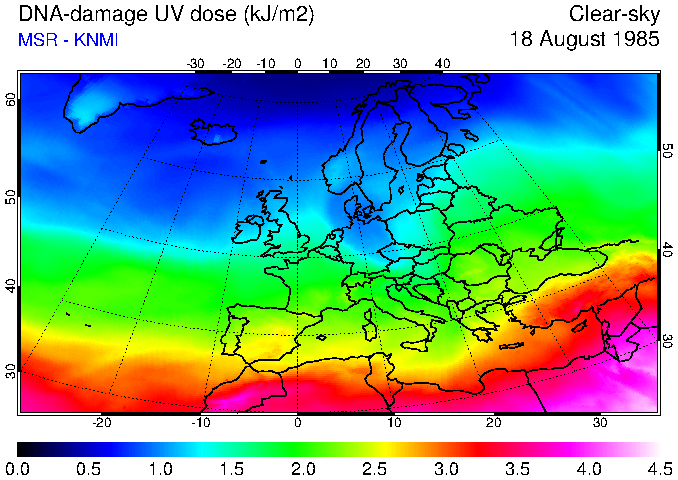 DNA-damage UV dose of 18 August 1985