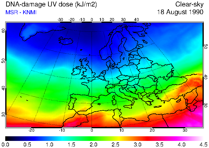 DNA-damage UV dose of 18 August 1990