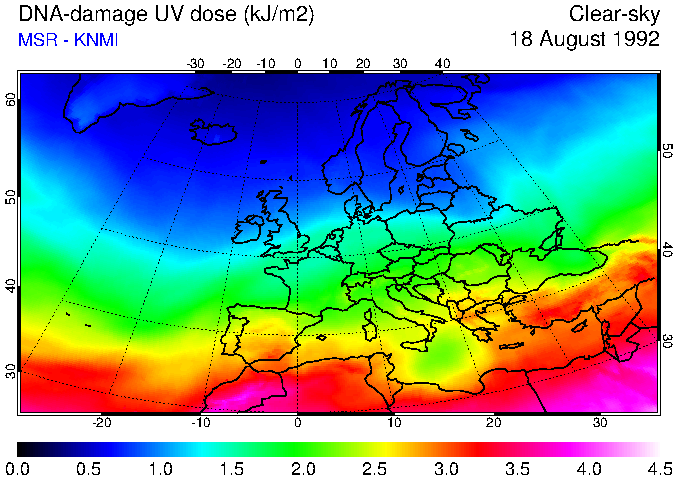 DNA-damage UV dose of 18 August 1992
