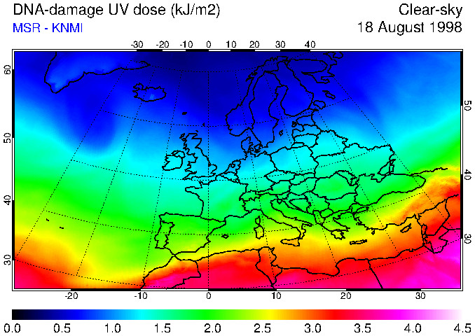 DNA-damage UV dose of 18 August 1998