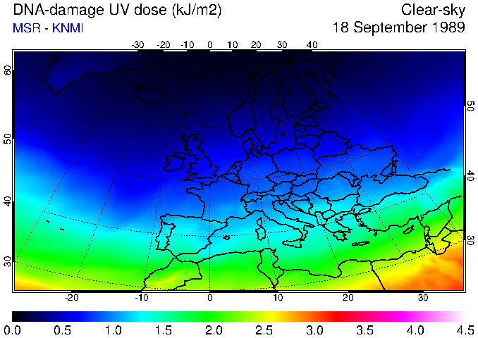 DNA-damage UV dose of 18 September 1989