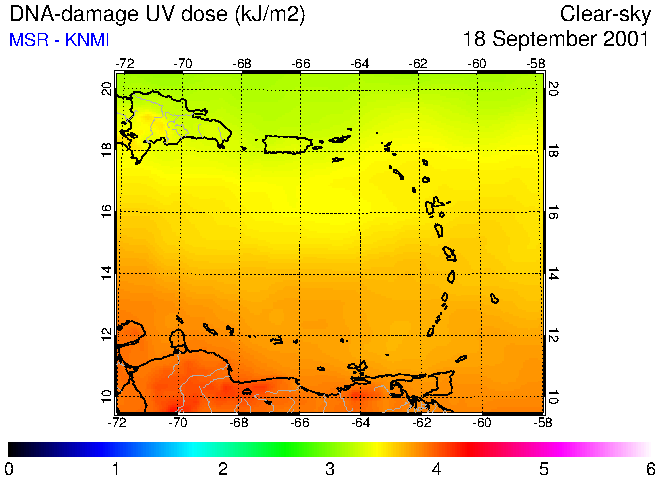 Clear-sky UV index:   erythemal