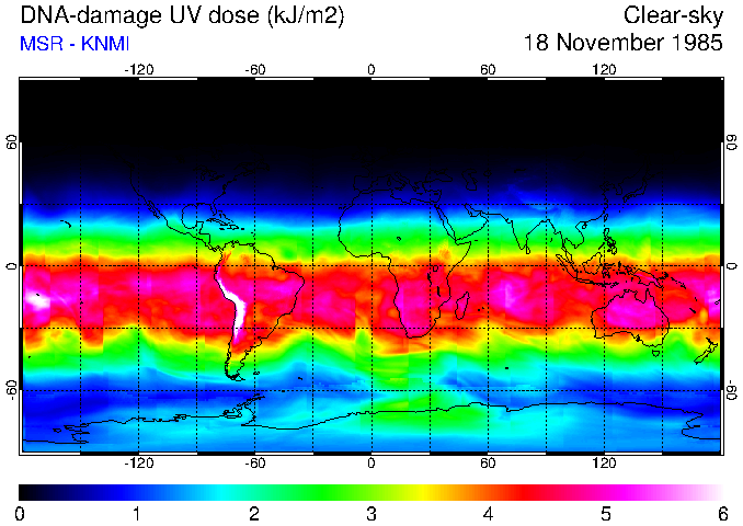 DNA-damage UV dose of 18 November 1985