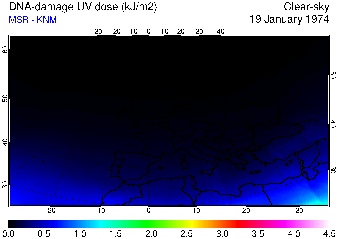 DNA-damage UV dose of 19 January 1974