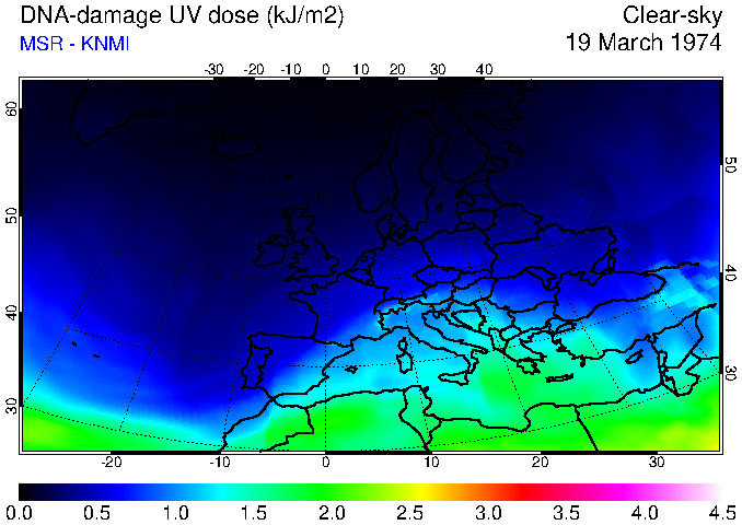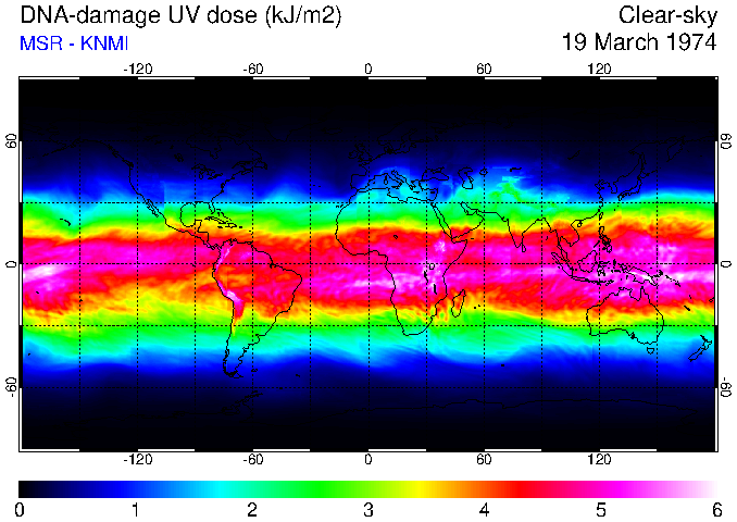 DNA-damage UV dose of 19 March 1974