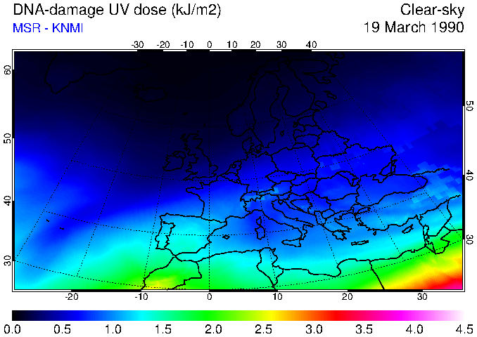 DNA-damage UV dose of 19 March 1990