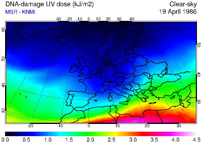 DNA-damage UV dose of 19 April 1986