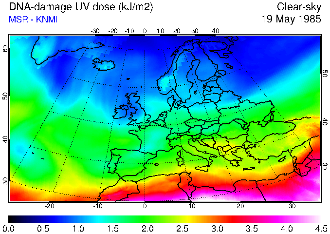 DNA-damage UV dose of 19 May 1985