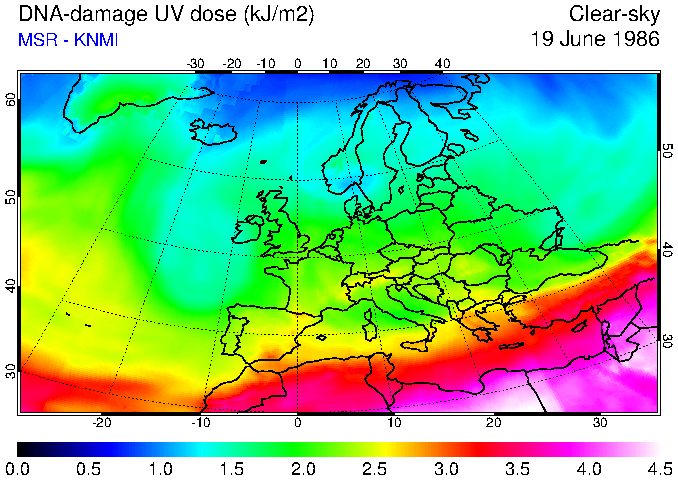 DNA-damage UV dose of 19 June 1986
