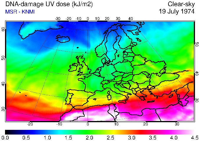 DNA-damage UV dose of 19 July 1974