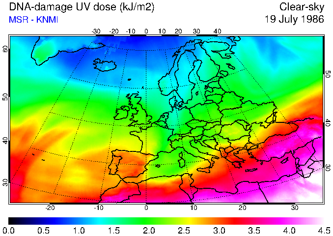 DNA-damage UV dose of 19 July 1986