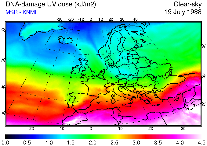 DNA-damage UV dose of 19 July 1988