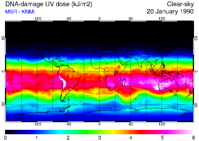 DNA-damage UV dose of 20 January 1990