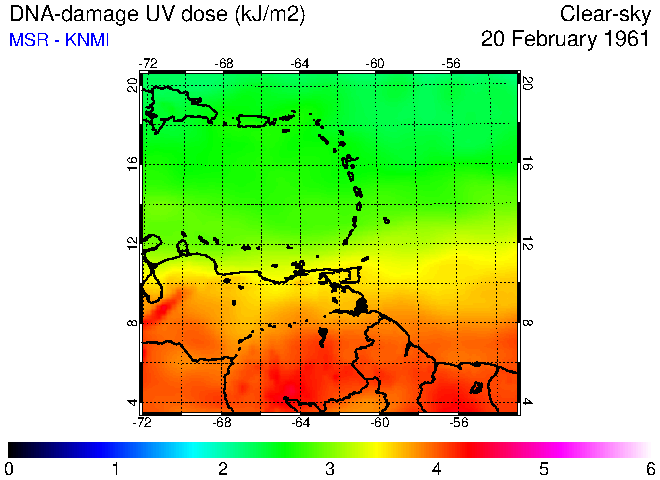 Clear-sky UV index:   erythemal
