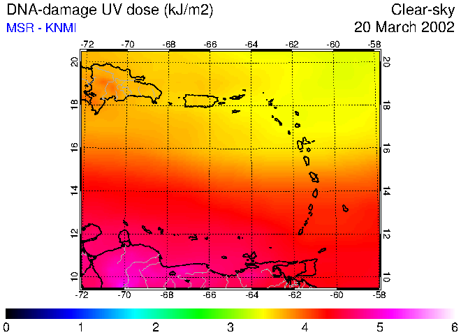 Clear-sky UV index:   erythemal