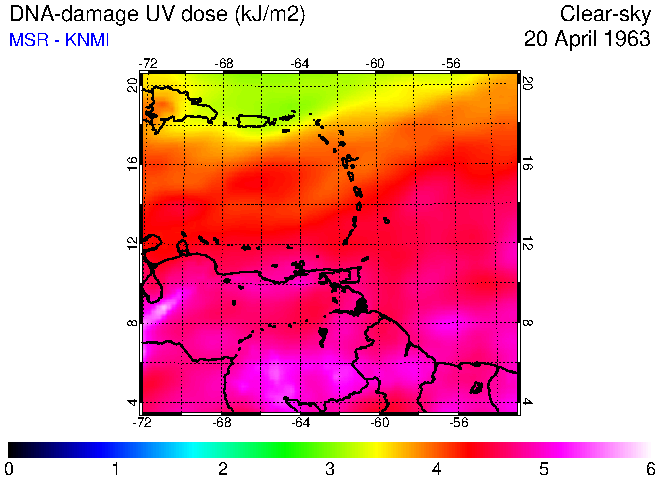 Clear-sky UV index:   erythemal