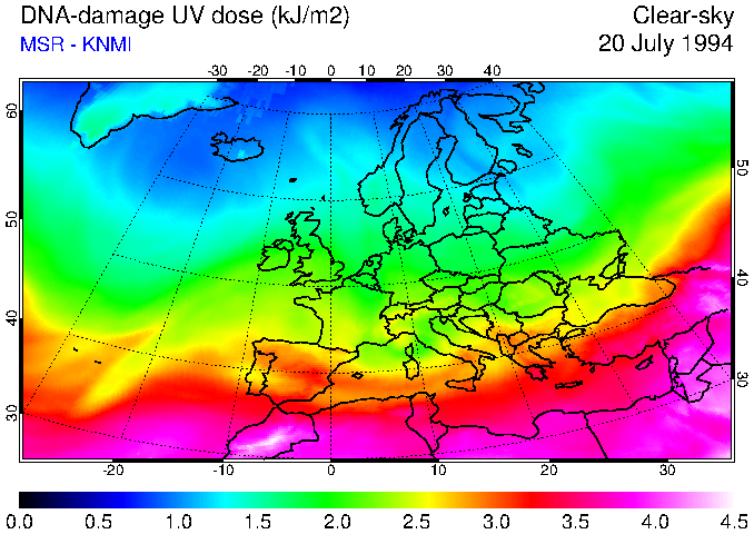 DNA-damage UV dose of 20 July 1994