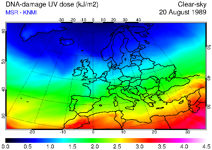 DNA-damage UV dose of 20 August 1989