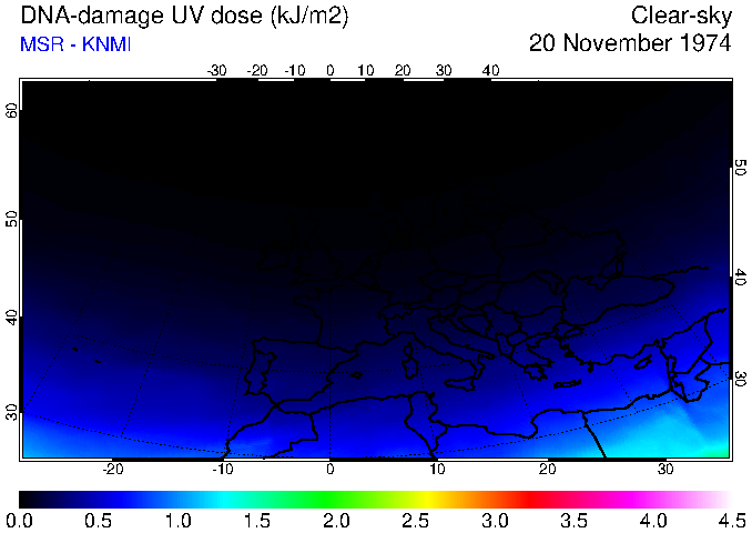 DNA-damage UV dose of 20 November 1974