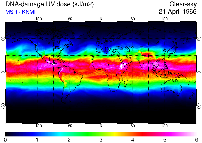Daily UV dose:   erythemal  |  vitamin-D  |  DNA-damage