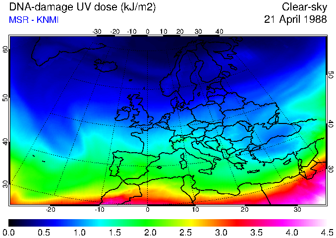 DNA-damage UV dose of 21 April 1988