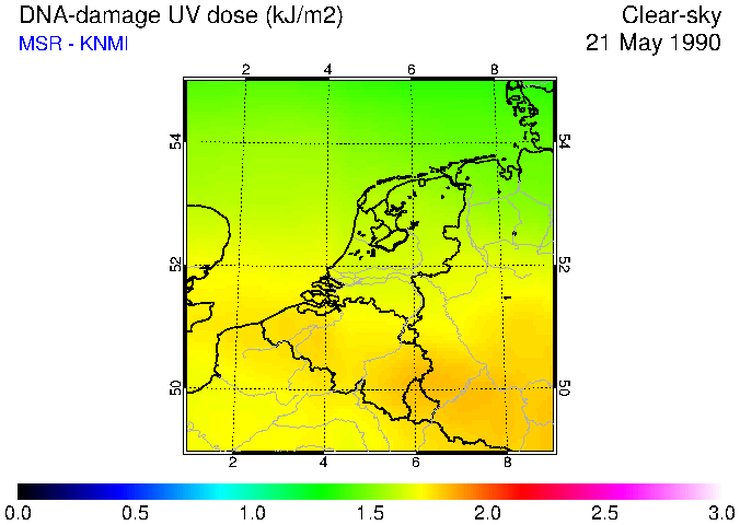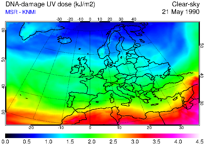 DNA-damage UV dose of 21 May 1990