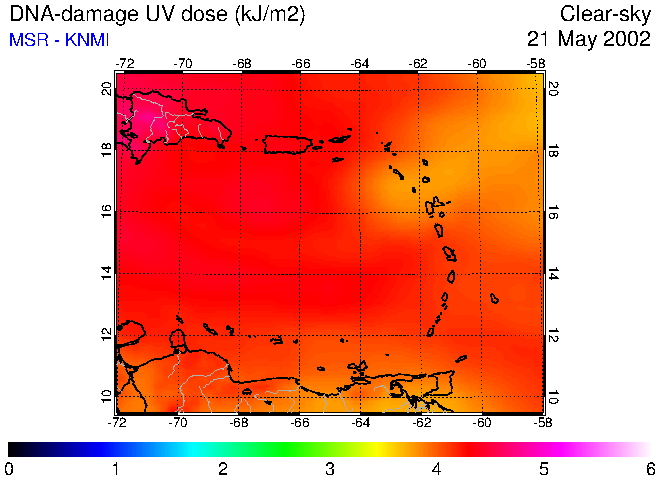 Clear-sky UV index:   erythemal