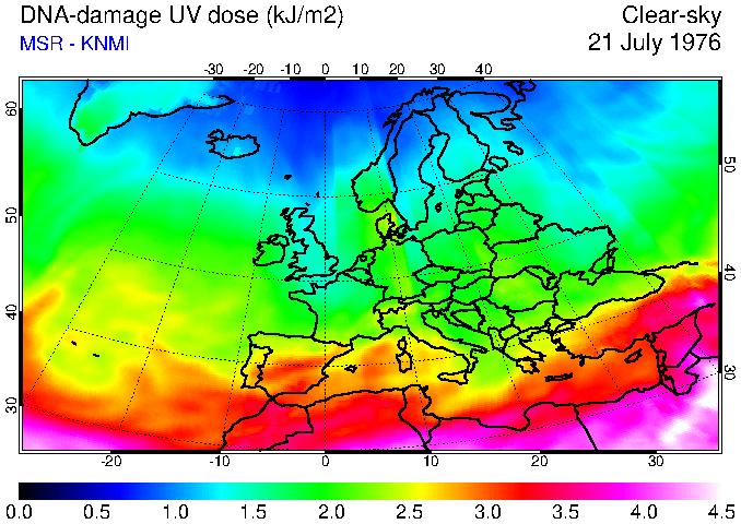 DNA-damage UV dose of 21 July 1976