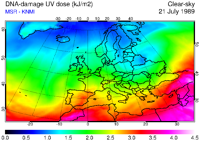 DNA-damage UV dose of 21 July 1989