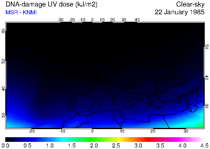 DNA-damage UV dose of 22 January 1985