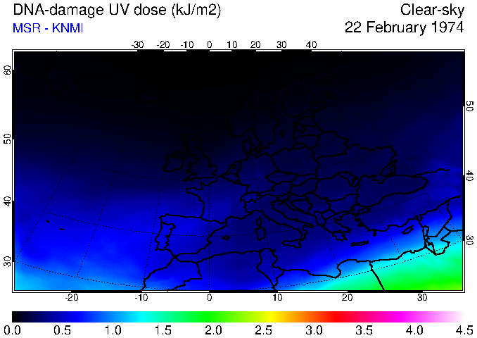 DNA-damage UV dose of 22 February 1974