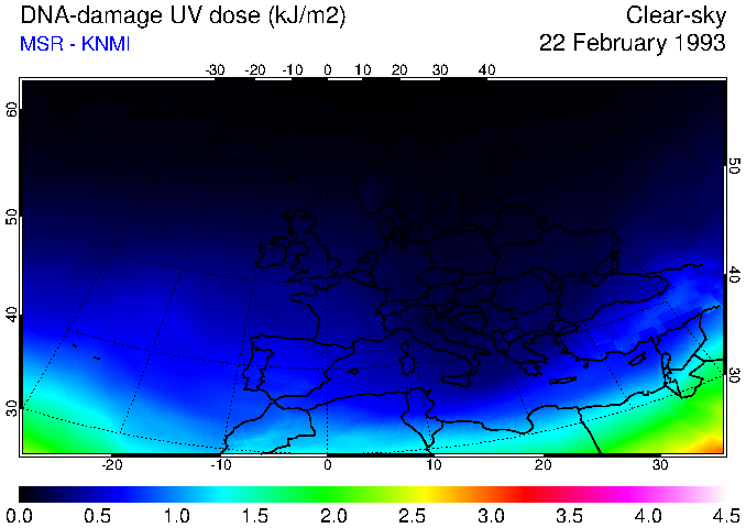 DNA-damage UV dose of 22 February 1993