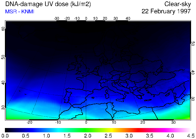 DNA-damage UV dose of 22 February 1997