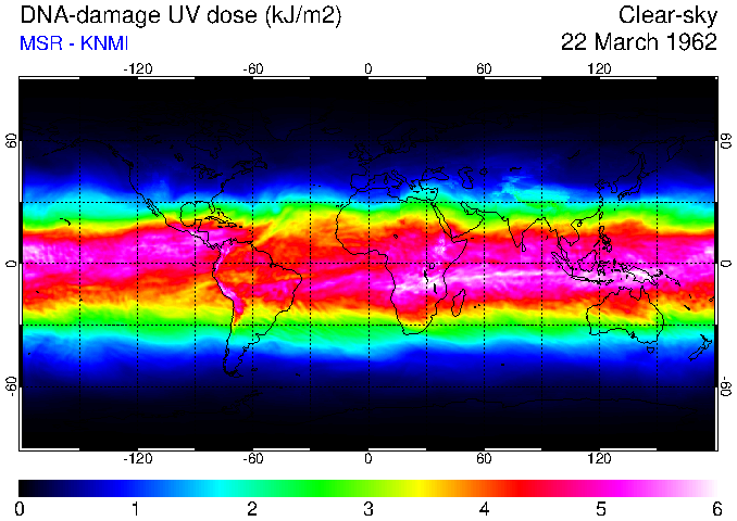 Daily UV dose:   erythemal  |  vitamin-D  |  DNA-damage