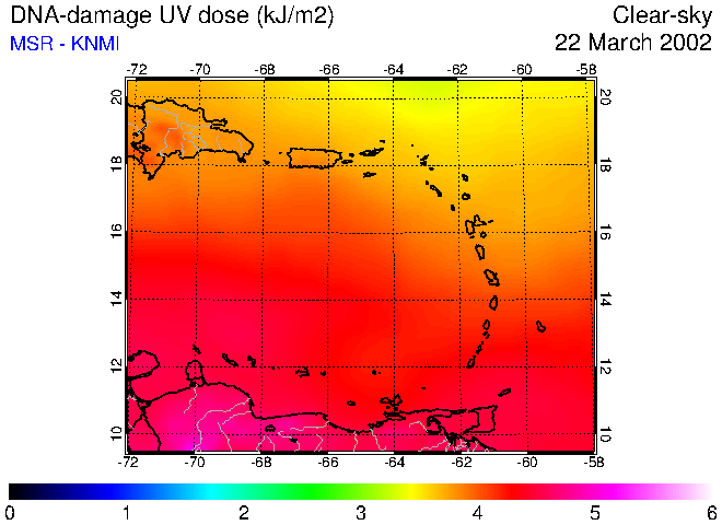 Clear-sky UV index:   erythemal