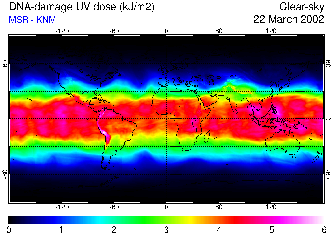 Daily UV dose:   erythemal  |  vitamin-D  |  DNA-damage
