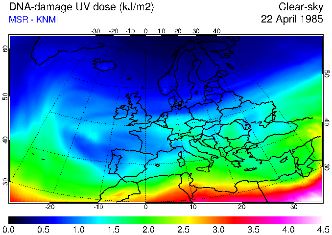 DNA-damage UV dose of 22 April 1985