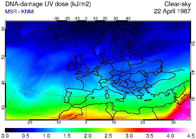 DNA-damage UV dose of 22 April 1987