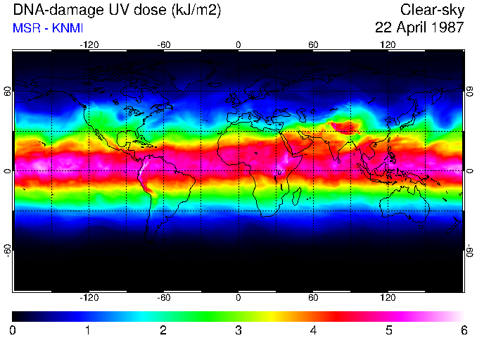 Daily UV dose:   erythemal  |  vitamin-D  |  DNA-damage