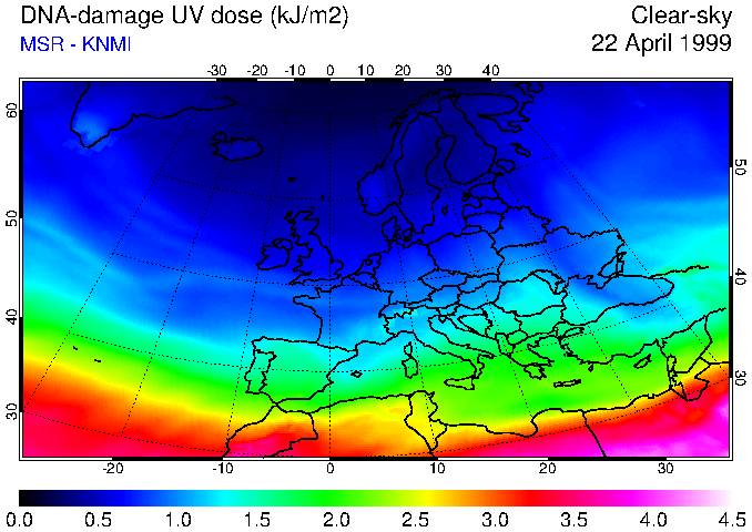 DNA-damage UV dose of 22 April 1999