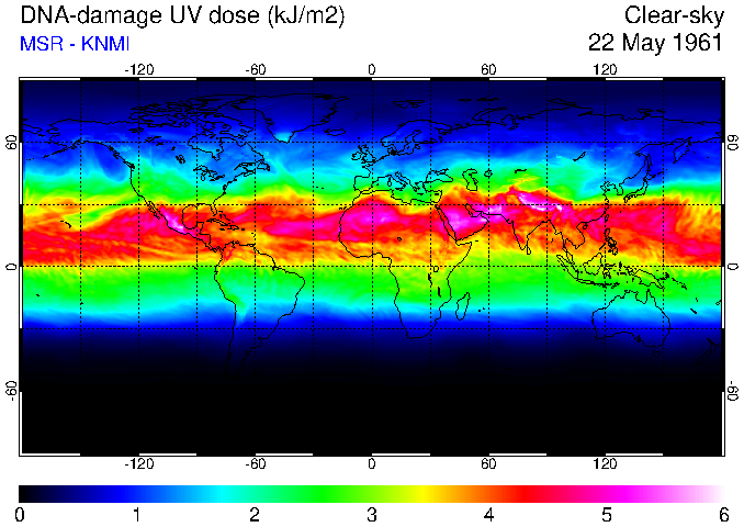 Daily UV dose:   erythemal  |  vitamin-D  |  DNA-damage